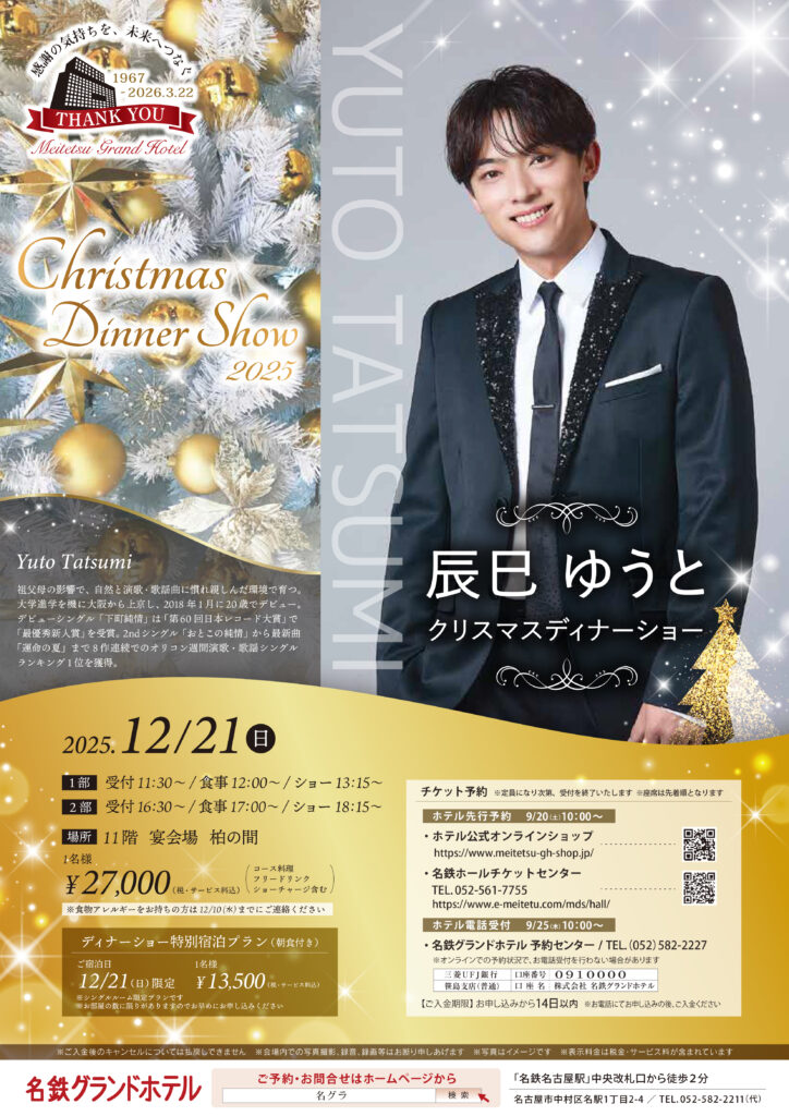 【「辰巳ゆうとクリスマスディナーショー2025」一般発売情報!】