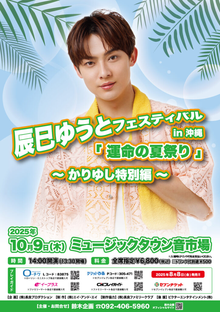 10/9(木)「辰巳ゆうとフェスティバルin沖縄~運命の夏祭り~かりゆし特別編」8/8(金)10:00~一般発売開始!