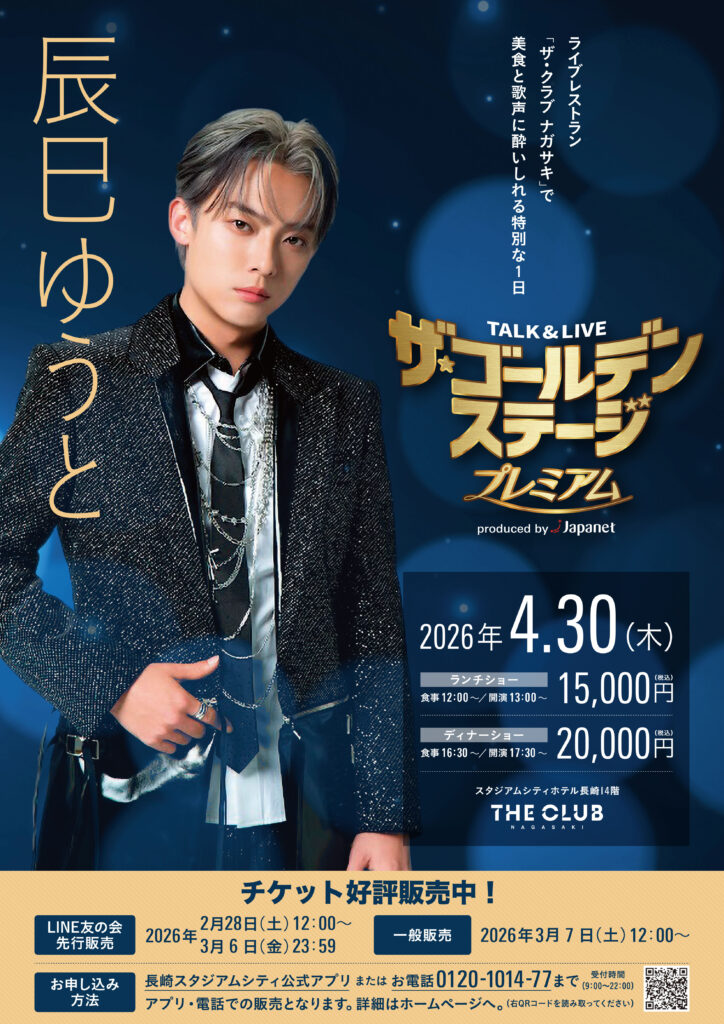 4/30(木)「TALK&LIVE ザ・ゴールデンステージプレミアム produced by japanet『辰巳ゆう とLIVE』」 一般発売のお知らせ